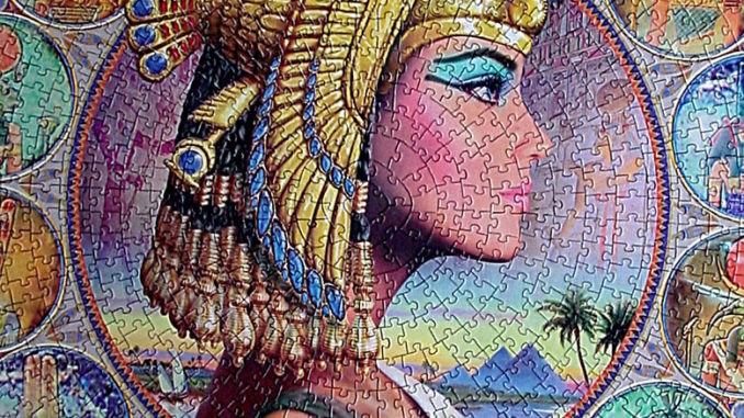 Meidän Kleopatramme on Ptolemaios XII:n tytär, Kleopatra VII. Isä oli määrännyt hänet hallitsemaan yhdessä alaikäisen pikkuveljensä kanssa 51-49/48 eKr. Veljeä ohjailleet neuvonantajat onnistuivat karkottamaan Kleopatran Egyptistä.
