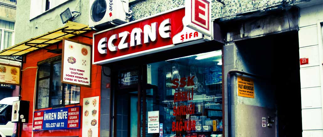 Kävimme Alanyassa 18.10.2019 terveyskeskuksessa. Sen jälkeen menimme käyttämäämme keskuksen lähellä olevaan apteekkiin lääkärin kirjoittamien koodilappujen kera, jotka toimivat Turkissa resepteinä.