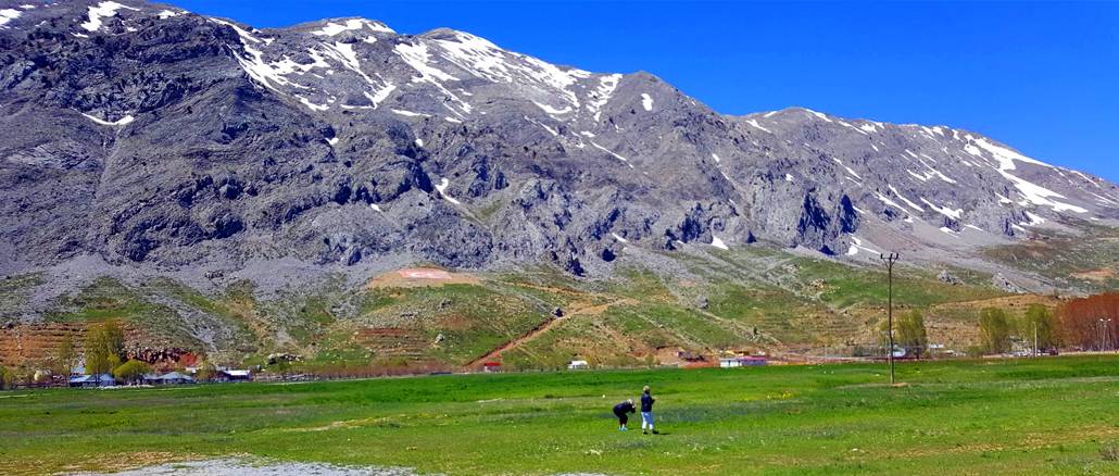 Kylää en löytänyt googlen kartoista, mutta ystäviemme avulla se paikannettiin navigaattoriin. Kuusikymmentä kilometriä ja lähes kaksi tuntia myöhemmin avautui silmiemme eteen upea, nyt vielä osittain lumipeittesten vuorten ympäröivä laakso. Kevään voimakas vihreys helmihyasintteineen kaunisti tasankoa jonka reunamilla oli kukkivien hedelmäpuiden keskellä pieniä, huvilamaisia taloja.