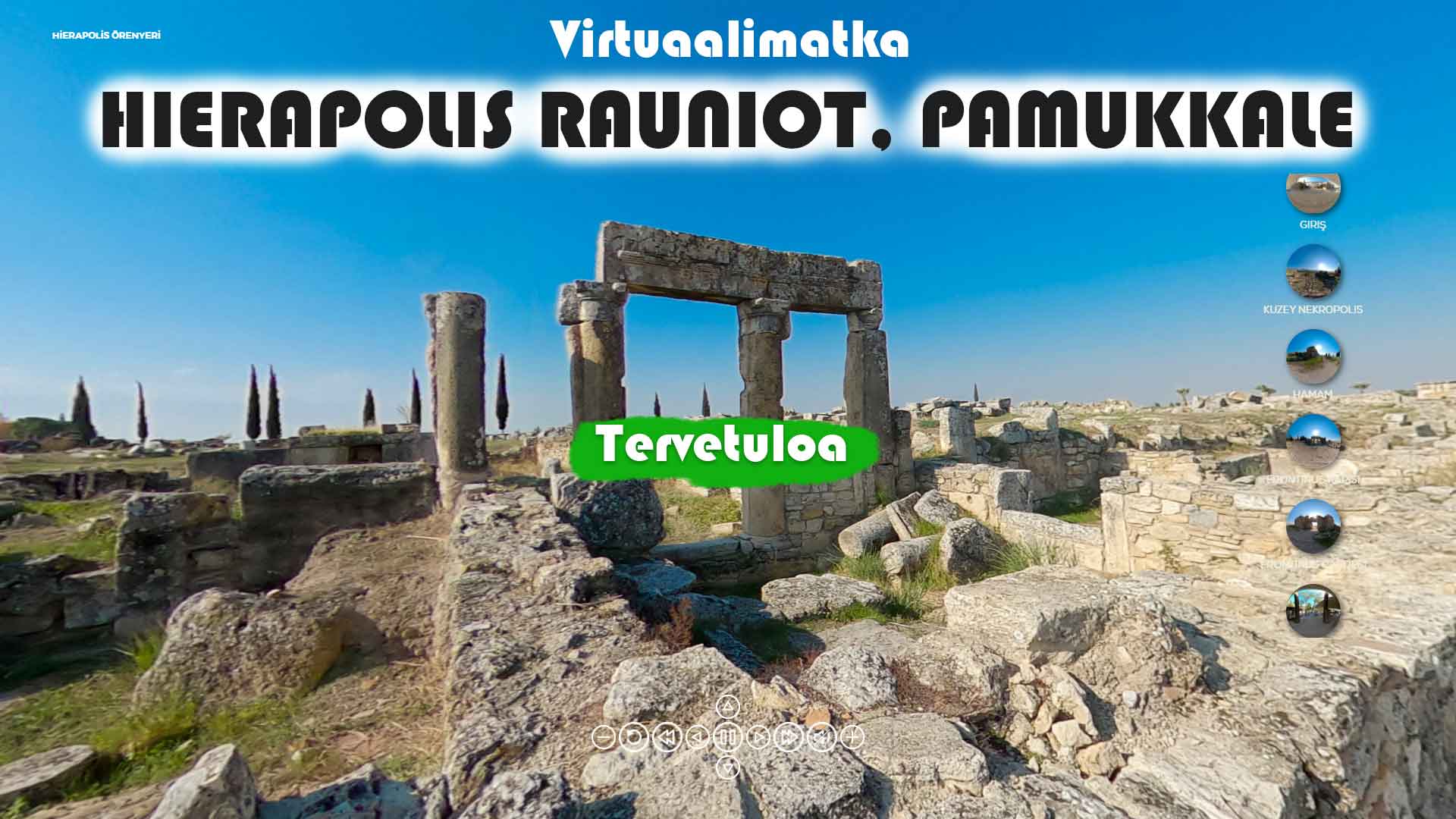 Maksullinen virtuaalimatkailu on nousussa koronaviruksesta johtuvien liikkumisrajoitusten takia Suomessa. Me löysimme Turkin ystäville ilmaisia virtuaalimatkoja Turkista. Tällä kertaa pääsette tutustumaan Hierapolis raunioihin. Hierapolis rauniot sijaitsee Turkin Denizlissä lähellä Pamukkale.