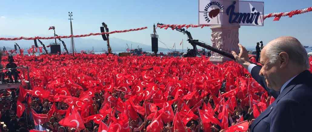 Yhteisessä vaalitilaisuudessa puhuivat AK-puolueen puheenjohtaja ja presidentti Recep Tayyip Erdoğan ja MHP-puolueen Puheenjohtaja Devlet Bahçeli. esim.İzmirinlahden saastuminen on edelleen merkittävä ongelma joka pitää ratkaista.