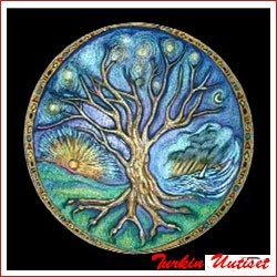 Tämä Akçam puu kasvaa ainoastaan keski aasiassa. Turkkilaisten vanhan uskon mukaan maailman keskellä kasvaa tämä puu. Tämä puu ulottuu taivaassa asuvan Jumala Ülgenin palatsiin asti. Puun uskotaan olevan elämän ja ihmiskunnan lähde. Tämä puu näkyy turkkilaisissa matoissa eri versioina edelleen.