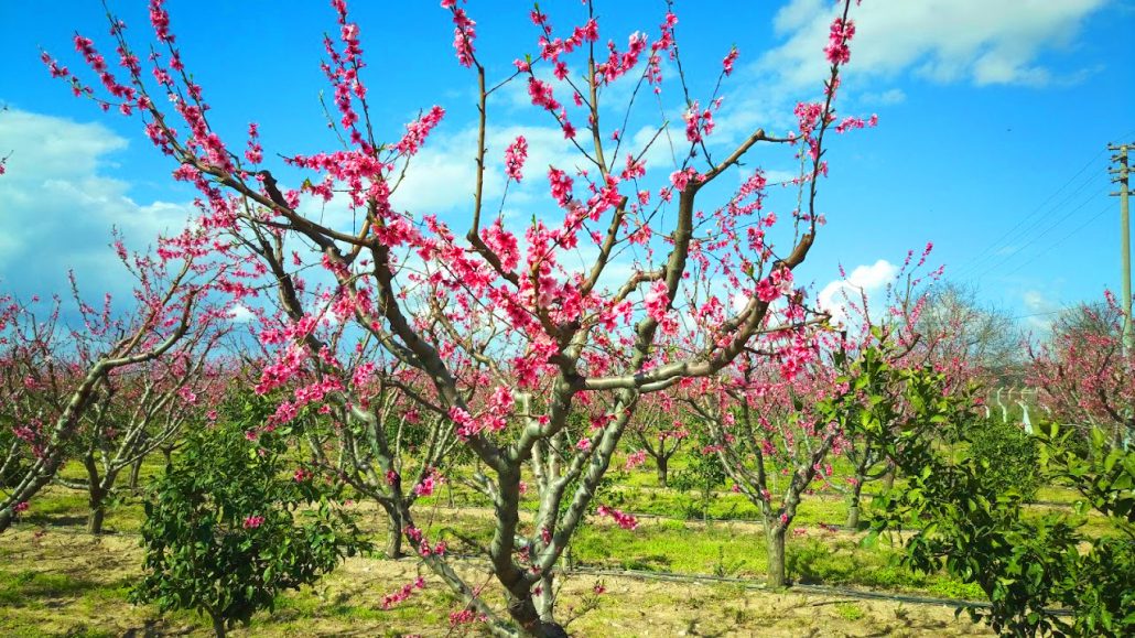 Kevät on tulossa Kuşadasıin, Persikka puut kukkii