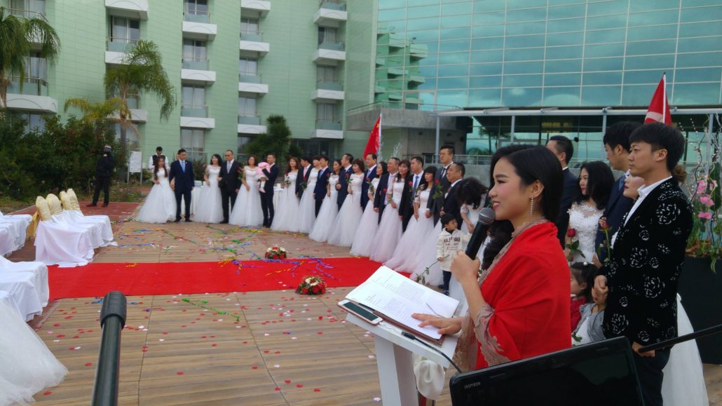 Gelinlik ve damatlıklarını giyerek gelen Çinli çiftler için bir otelde Türk ve çin geleneklerine göre düğün merasimi düzenlendi. Çin’de yapılan tanıtım ve girişimler sonuçlarını vermeye başladı. 2018’in Türk yılı ilan edildiği Çin’den, yılın ilk günlerinde Devlet bakanı,doktor, eczacı ve sağlık çalışanlarından oluşan 30 çift düğün kıyafetleriyle geldi.