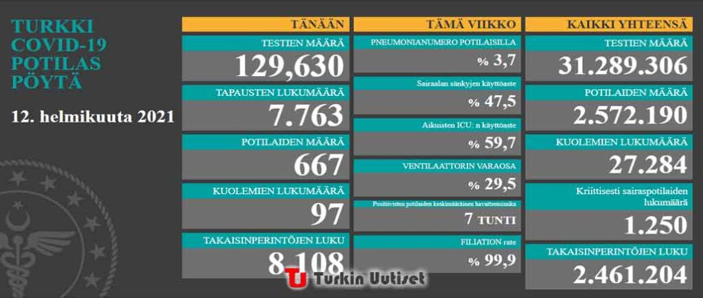 Turkin terveysministeri Fahrettin Koca ilmoitti tiedot koronavirusepidemian viimeisimmästä tilanteesta. Voit seurata toteutettujen rokotteiden määrät tästä linkistä suoraan: T.C. Sağlık Bakanlığı (saglik.gov.tr)
