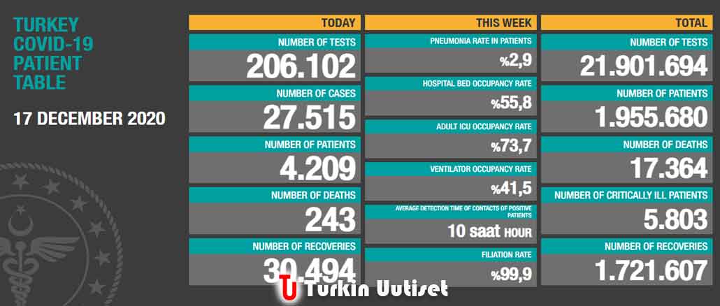 Terveysministeri Fahrettin Koca ilmoitti tiedot koronavirusepidemian viimeisimmästä tilanteesta.