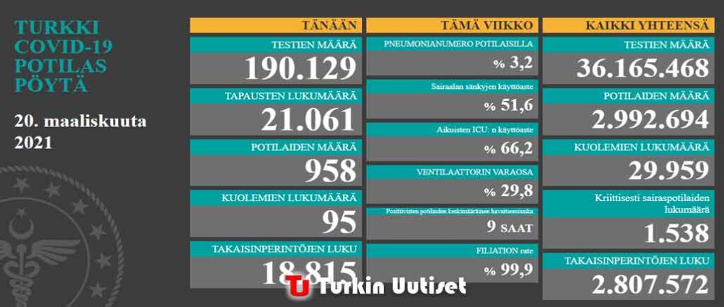 Koronavirus tilanne Turkissa 20.3.2021