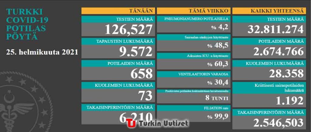 Turkin terveysministeri Fahrettin Koca ilmoitti tiedot koronavirusepidemian viimeisimmästä tilanteesta. Voit seurata toteutettujen rokotteiden määrät tästä linkistä suoraan: T.C. Sağlık Bakanlığı (saglik.gov.tr)