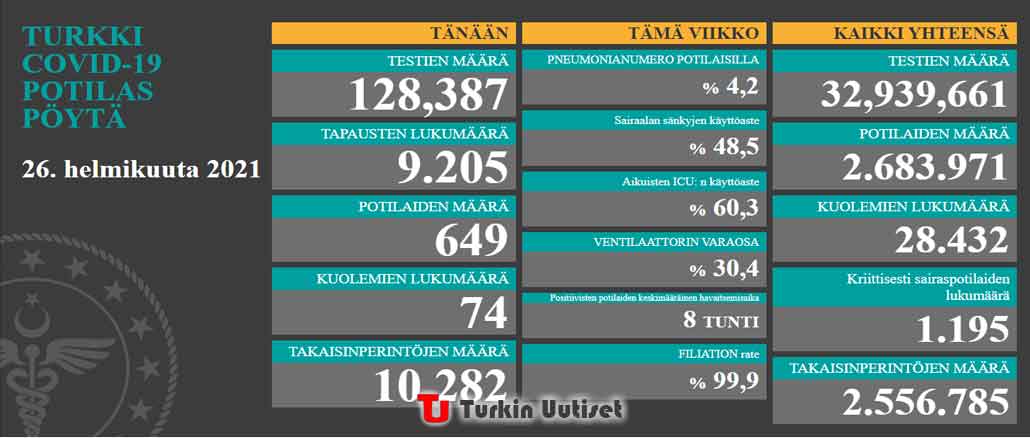 Koronavirus tilanne Turkissa 26.2.2021