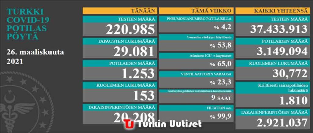 Koronavirus tilanne Turkissa 26.3.2021