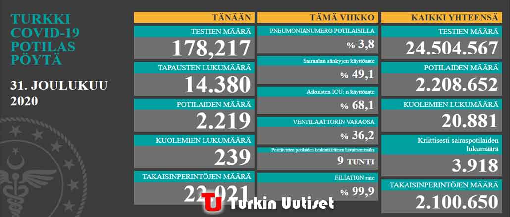 Turkin terveysministeri Fahrettin Koca ilmoitti tiedot koronavirusepidemian viimeisimmästä tilanteesta.