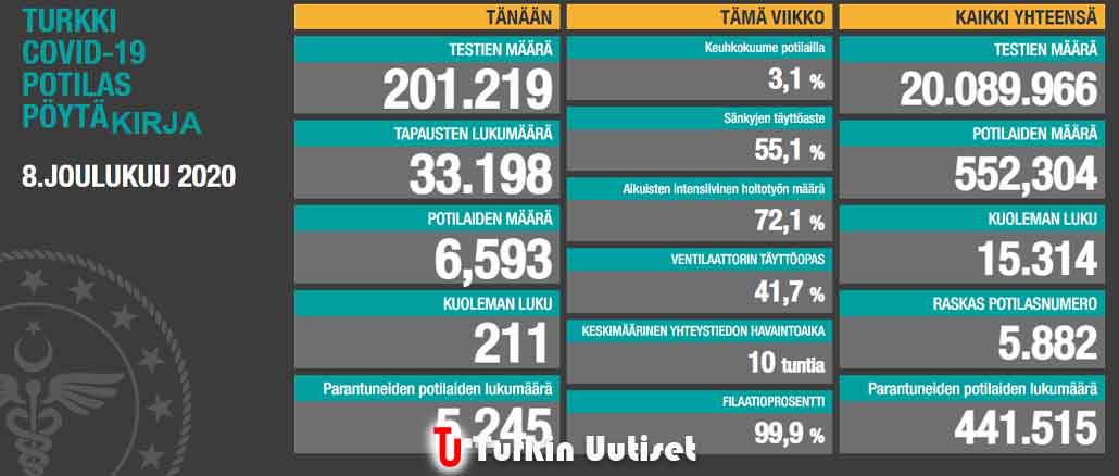 Koronavirus tilanne Turkissa 8.12.2020