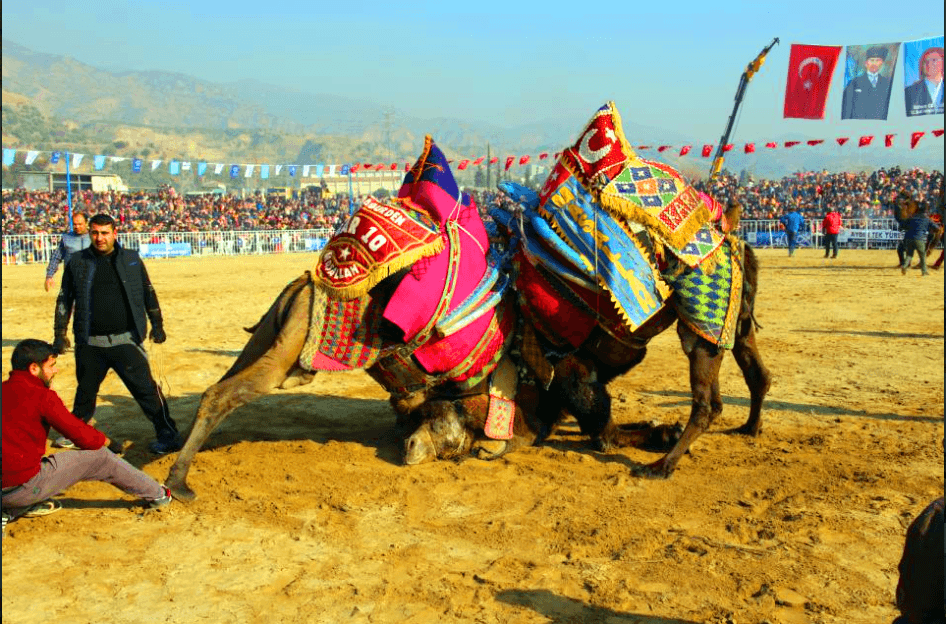 Silloin on kameleiden kiima-aika. Uros kamelit kilpailevat naaras kamelista. Siitä on tullut iso tapahtuma. Kameleiden turvat laitetaan kiinni että ne eivät purisi ja vahingoittaisi toisiaan. Silloin kamelit joutuvat käyttämään paljon vartaloaan. Se muistuttaa turkkilaisten toista perinne urheilua öljypainia. Kameli kilpailulla on omat säännöt ja tuomarit samoin kuin paini otteluissa.