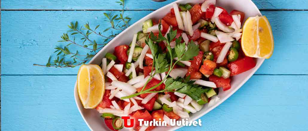 - Sekoita kaikki leikatut ainesosat paitsi sipuli salaattikulhossa. Aseta sipulit salaatille viimeisenä koristeena.