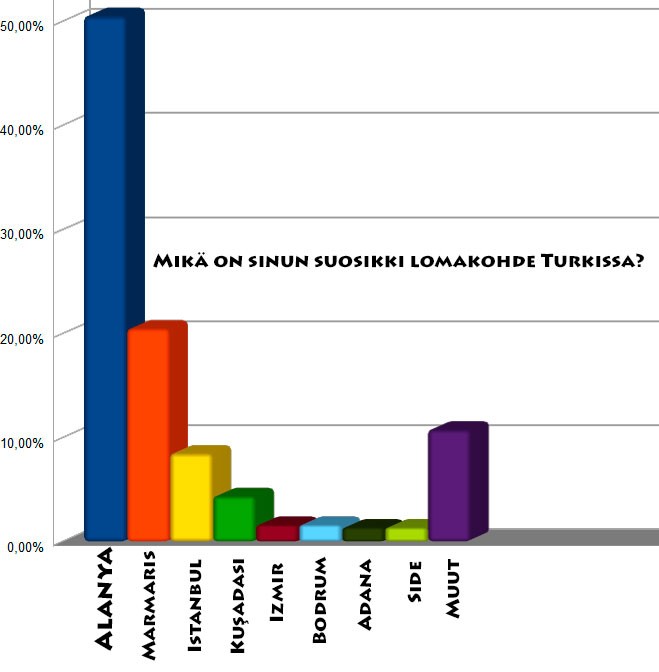 Turkin Uutiset on tehnyt tutkimus suomalaisten suosikki lomakohteista. Tutkimuksen ajankohta on 2-7.4.2018.