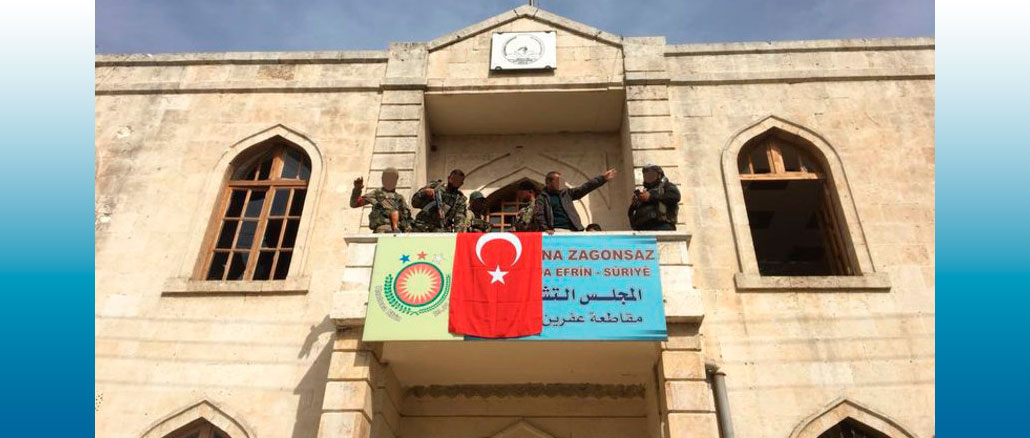 ”Vaikka Afrin kylien turvallisuus säilytetään, tarjoamme apua, kuten ruokaa ja lääkettä”, hän totesi. Turkki sanoi 13. maaliskuuta, että sen armeija ja liittoutuneet kapinalliset ovat ympäröineet Afrin keskustan, jossa asuu noin 350 000 ihmistä ja jota hallitsee YPG(People’s Protection Units). Satoja siviilejä nähtiin pakenevan Afrinissa 12. maaliskuuta, jolloin autot saivat vietyä runsaasti henkilökohtaisia tavaroita ja ihmisiä kohti itäisiä alueita.
