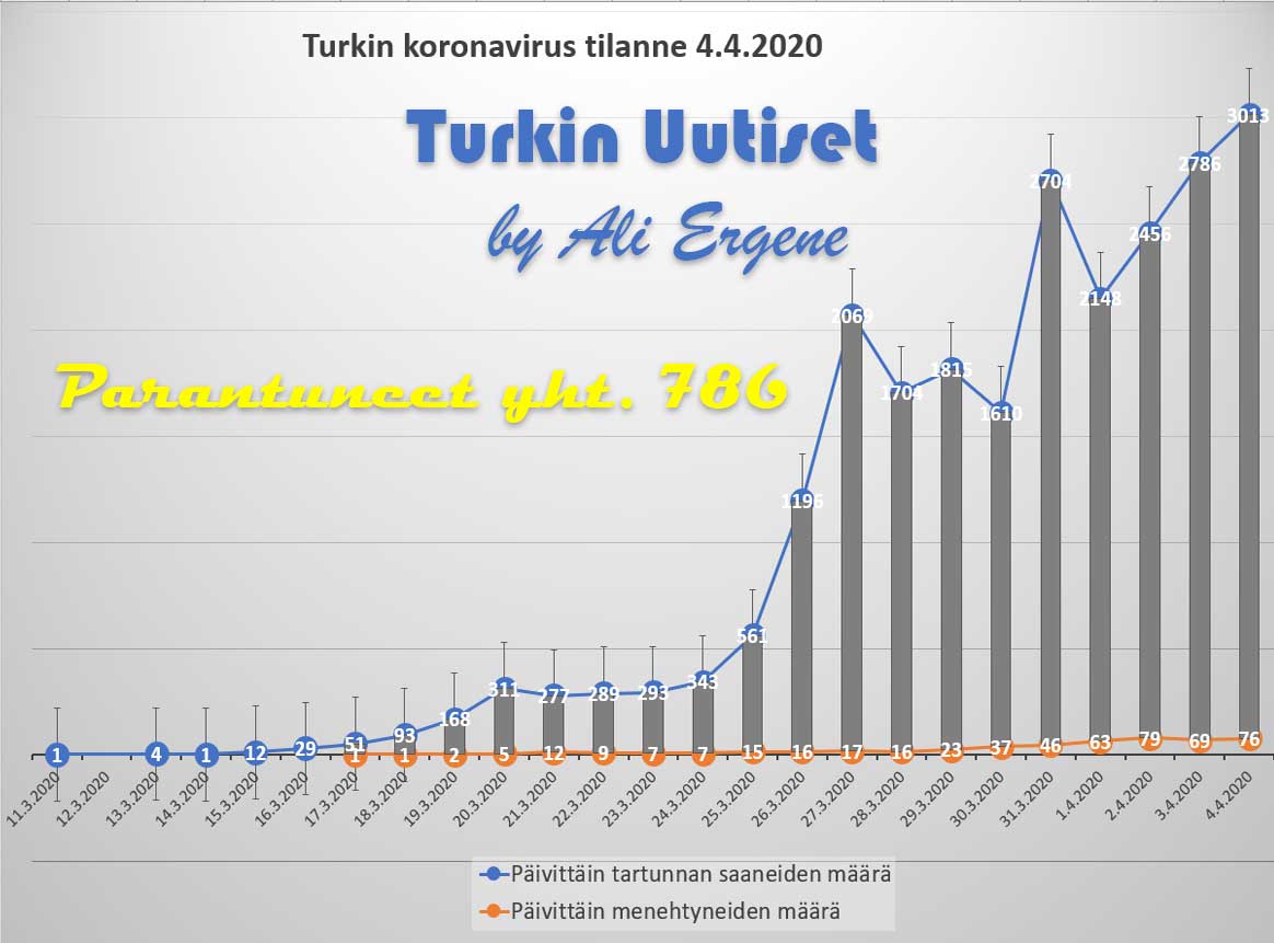 Turkin korovirus luvut nousee edelleen 4.4.2020