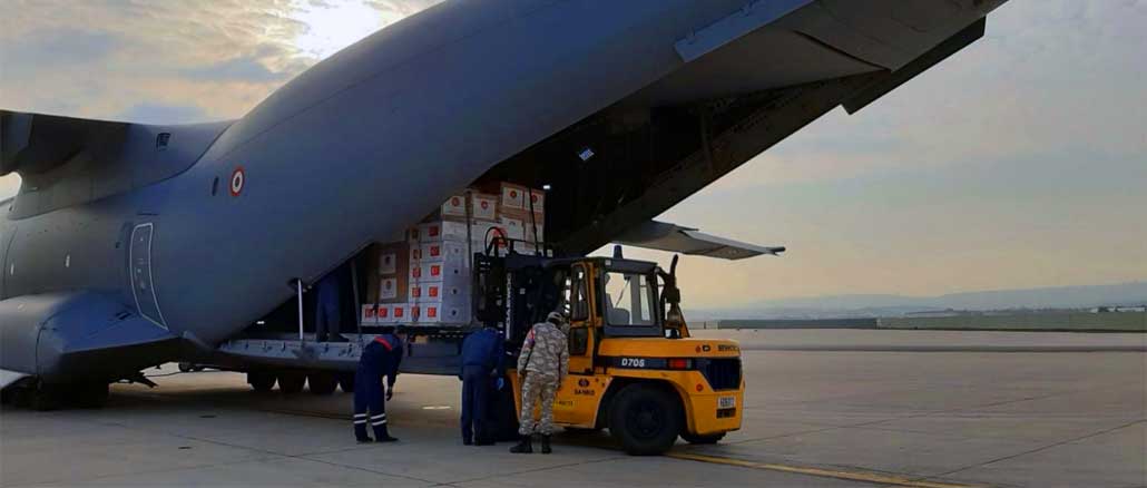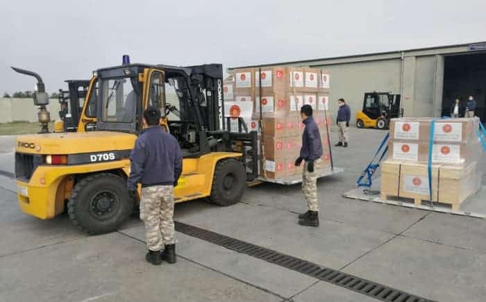 Puolustusministeriö ilmoitti, että Turkin asevoimien ilma-alukset lähettävät terveystuotteita, jotka koostuvat erityyppisistä maskeista, haalareista ja antibakteeristen nesteistä, jotka on valmistettu paikallisissa ja kansallisissa laitoksissa, Italiaan ja Espanjaan Kovid-19: n torjumiseksi.