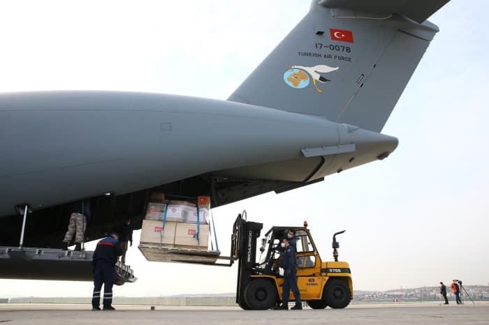 Turkkilainen armeijan rahtikone vie lääkinnällisiä tarvikkeita Italiaan ja Espanjaan. Turkkilainen rahtikone nousi Ankaran Etimesgutin sotilaslentoasemalta. Naton pääsihteeri Jens Stoltenberg kertoi, että Turkin asevoimat (TSK) lähettivät terveystarvikkeita Italiaan ja Espanjaan, mikä on selkeä osoitus liittolaisten solidaarisuudesta.