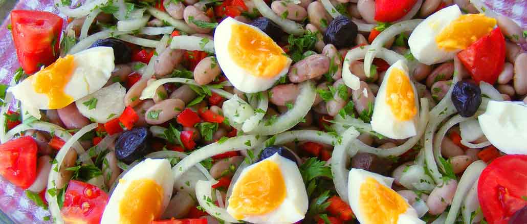 Huuhtele ja valuta kylmät pavut, sekoita kaikki salaatin ainekset keskenään kulhossa. Sen jälkeen kaada pavut päälle. Laita lopuksi suola, sitruunamehu, Tariş oliiviöljy ja mausteet. Sekoita hyvin. Tarjoile salaatti vaikka kananmuna lohkoilla, mustilla oliiveilla silputulla porkkanalla ja tuoreella persiljasilpulla koristeltuna.