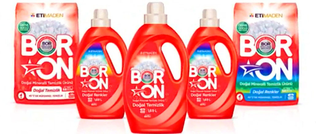 Boori mineraali löytyy runsaasti Turkissa. Turkin boori varallisuus on 73 % maailmassa. Boori mineraali käytetään monessa tuotteessa. Se pitää pesukonen putkistoa puhtaana. Lyhäntää vaatteiden pesuaikaa, pesee puhtaaksi vähässä vedessä ja säästää vettä ja sähköä. Pesutulos on hyvä pienellä vesi määrällä. Tuotetta saa isoista kaupoista Turkissa. Uuden pesuainen nimi on BORON. Pesuainen kehittäjä firman nimi on Eti Maden. Eti Maden on kaivosyhtiö.