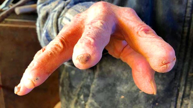 Vanha pappa rakastaa tätä ammattia niin paljon vaikka hän on menettänyt osan 10 sormesta tätä ammattia harrastaessaan. Hän näyttää sormia meille. Pappa sitkeästi käy töissä edelleen. Työtapaturmat ja ikä eivät estä pappaa.
